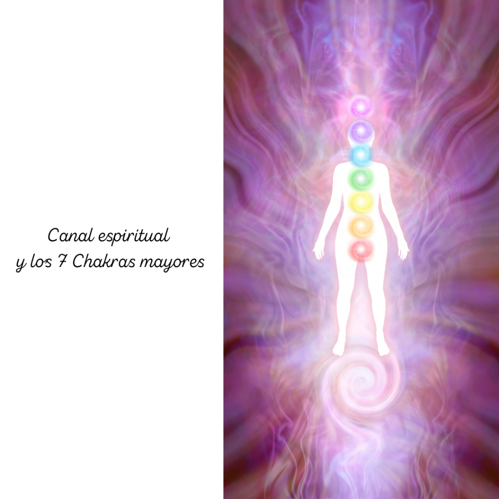 A lo largo del canal espiritual están los centros mayores de energía del cuerpo,llamados Chakras. En ellos se concentra especialmente la energía, ya que, la recogen, reúnen, regulan y la distribuyen en su localización y frecuencia propia. Cada uno de los 7 Chakras actúa en un área determinada teniendo especial influencia en los órganos que rodean esa zona.