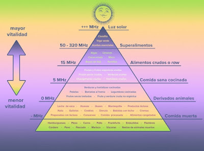 Los alimentos que ingerimos también tienen su frecuencia, aunque hay que aclarar, que como nosotros y todo a nuestro alrededor, se les puede aumentar la frecuencia vibracional o bajar según la intención que se le ponga al cocinar o antes de comerlos.