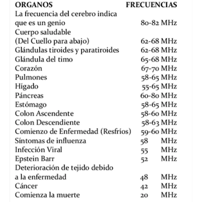 Las emociones y reacciones humanas vibran entre 20 y 700 Hz hacia adelante. La frecuencia de las diferentes emociones en el hombre serían: